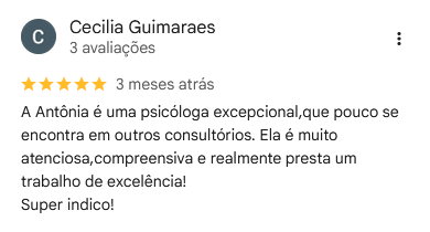 Além disso, atuo na Psicoterapia, em avaliação para cirurgia bariátrica, avaliação psicológica em saúde mental, Reabilitação cognitiva e psicodiagnóstico, direcionado ao público adolescente , adulto e idosos. Dentro da abordagem da Terapia Cognitiva Comportamental (TCC).